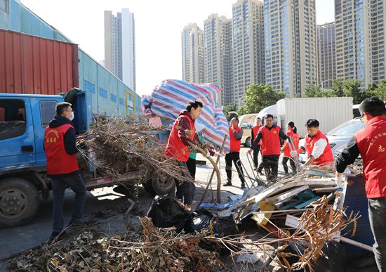 在乐山社区乐丰新街市海鲜肉菜市场,湛江市市场监管局志愿者服务队与经开区市场监管局、结对共建社区的干部们分工明确,手持扫帚、垃圾铲等工具迅速行动起来,有的清扫落叶,有的铲除地面顽固垃圾,有的戴上手套清理卫生死角,有的徒手搬走枯枝等杂物,有的帮忙把垃圾枯枝杂物搬上垃圾车运走,现场大家干劲十足,热火朝天。在大家的齐心协力下,集中清理了该市场周边背街小巷、卫生死角的垃圾杂物,整治了杂物乱堆放等影响环境卫生的不良行为,使该市场周边迅速恢复干净整洁。
