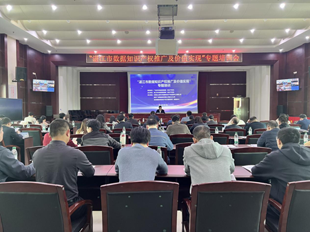 在数字经济蓬勃发展的大背景下,数据知识产权的价值日益凸显。为进一步提升湛江市数据知识产权发展和运用能力,3 月 19 日,湛江市市场监督管理局(知识产权局)成功举办 “湛江市数据知识产权推广及价值实现” 专题培训。来自各县(市、区)市场监管局业务骨干,各银行机构、企业代表等共 130 多人参加了此次培训。