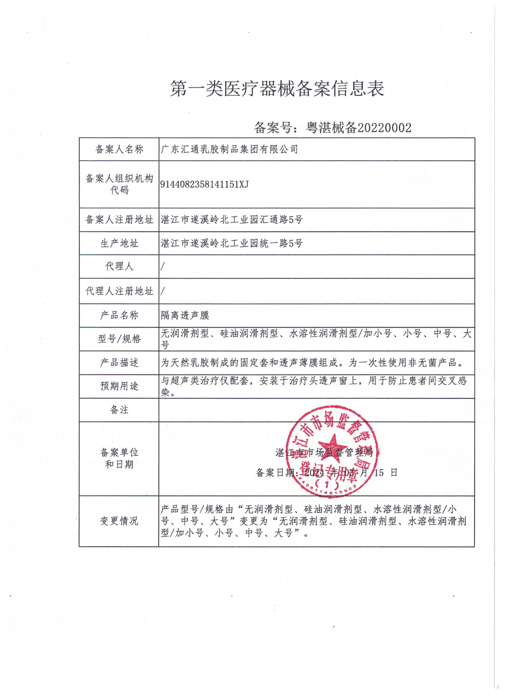 第一类医疗器械产品备案公示(20240002号)