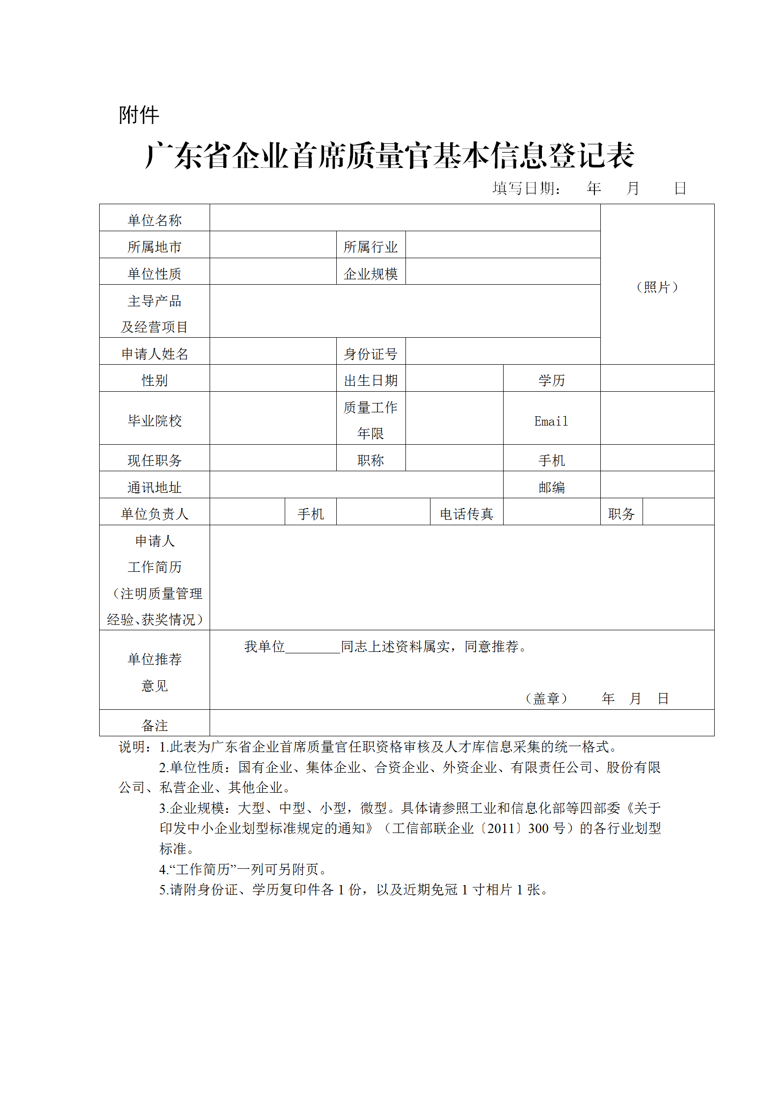 填表盖章:下载附件《广东省企业首席质量官基本信息登记表》让公司盖个章