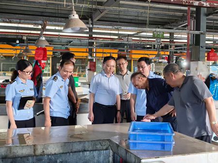 中秋佳节临近,为有效防范食品安全风险,守护广大群众“舌尖上的安全”,加强督导基孔肯雅热疫情防控工作,9月4日,湛江市市场监管局党组成员、副局长林文焕带队到奋勇高新区,开展中秋节前食品安全检查暨基孔肯雅热防控、农贸市场综合治理行动督导。