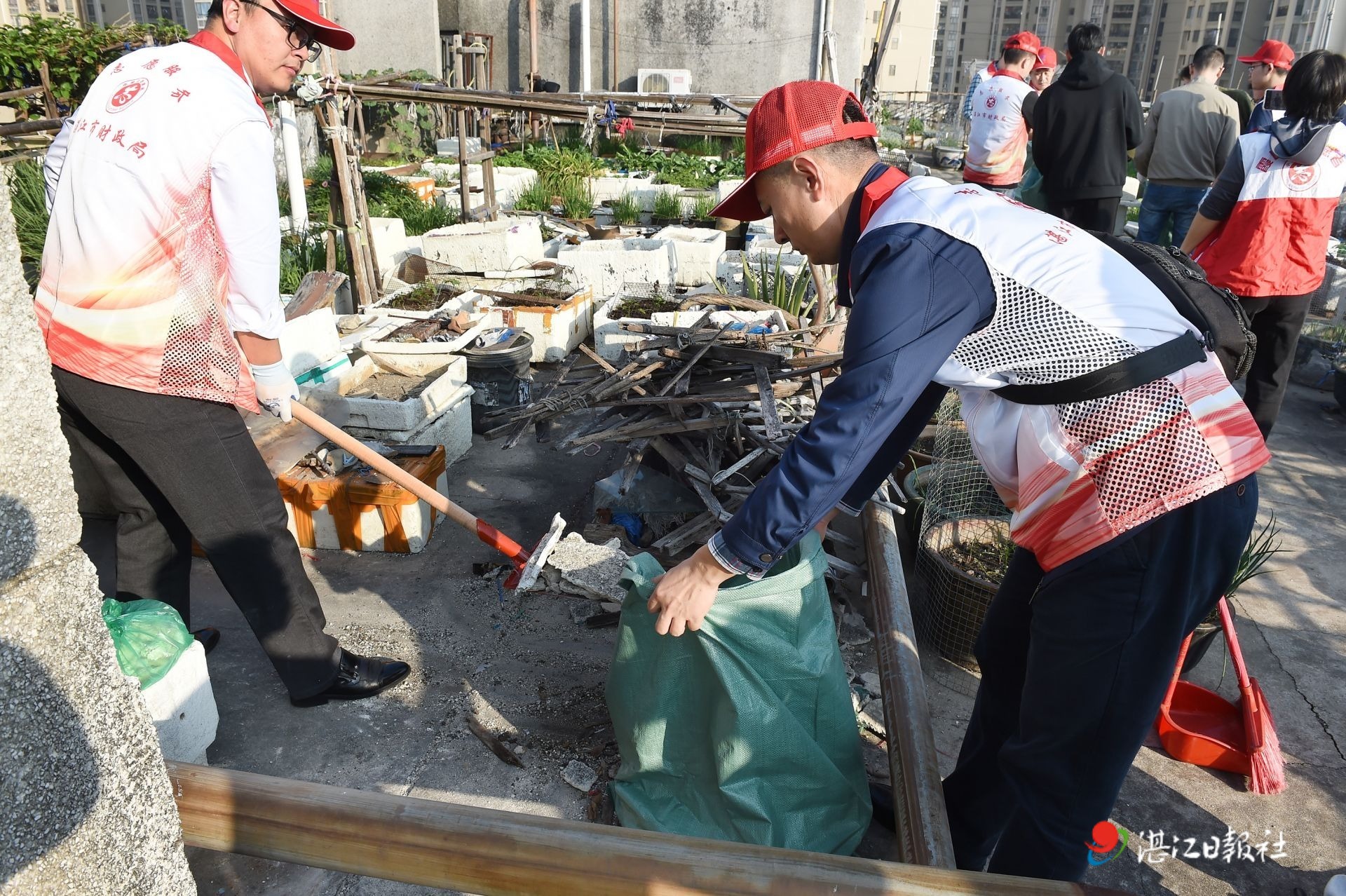 在建设街道建兴社区,市财政局联合霞山区财政局以“党群连心·共建家园”为主题,共同开展第四期“爱国卫生日”活动。大家与结对共建单位、辖区志愿者分为两组,一组仔细清扫沿街路面,不放过一片纸屑、一个烟头;另一组则深入湛江汽车修制厂宿舍区,攀梯清理棚顶积存垃圾。不少社区居民也自发加入清洁队伍,共同清理房前屋后卫生死角。市财政局相关负责人表示,接下来,财政系统将持续强化党建引领,凝聚更多社会力量,推动爱国卫生运动常态化、长效化开展,用点滴努力共同绘就人民群众的美好生活图景,让文明之花在社区绚丽绽放。