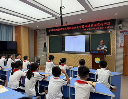按照上级2025 年“质量月”、“电梯安全宣传周”活动的部署,近日,赤坎区市场监管局、廉江市市场监管局分别在辖区以“进校园”“进企业”“进社区”等活动形式举办了一系列电梯安全常识公益宣传活动,大力普及电梯安全知识,不断提升公众安全、文明搭乘电梯的意识和氛围。